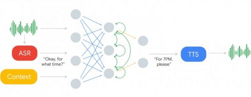 يستخدم Google Duplex نظام التعلم الآلي (TFX) لإنشاء شبكة عصبية مكررة (RNN) مع مهام معالجة الكلام من خلال التعرف التلقائي على الكلام (ASR) ومحركات تحويل النص إلى كلام (TTS) التي تتحكم في نمط الصوت حسب الموقف.